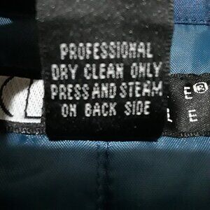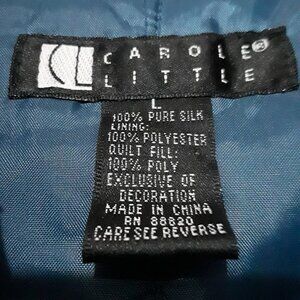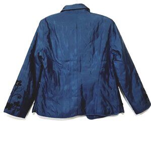 100% Silk Carole Little Blue Quilted Black Floral Sequins Jacket Size Large