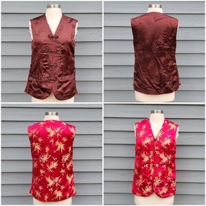 100% Silk Cheongsam Qipao Reversible Red Burgundy Floral Oriental Padded Vest Md