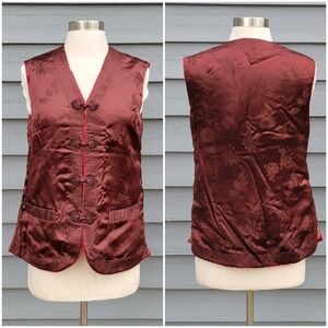 100% Silk Cheongsam Qipao Reversible Red Burgundy Floral Oriental Padded Vest Md