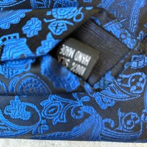 100% Silk Designer 58" Necktie & Matching Pocket Square Set Blue & Black Paisley