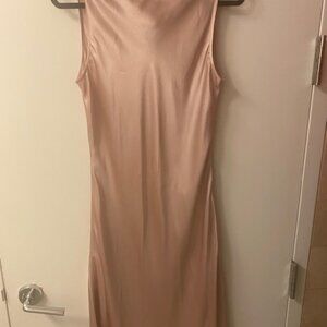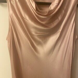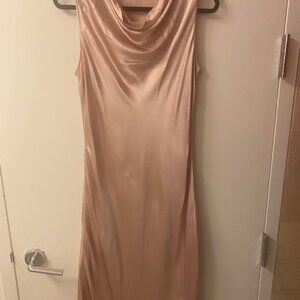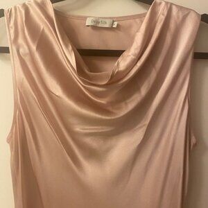 100% Silk Dress with Asymmetrical Cowl Neck in Light Pink