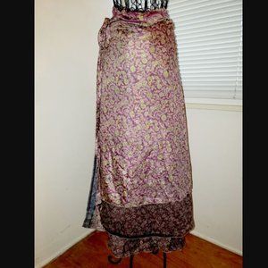 100% Silk Floral Boho Wrap-around Skirt Dress Versatile! Floral Earthy One Size