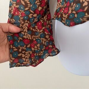 100% Silk Garnet Hill Boho Floral Print Women’s Top Blouse Long Sleeve Shirt 16