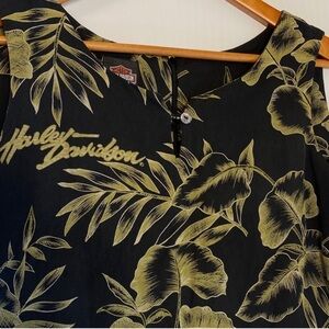 100% Silk Harley Davidson Tank Sheath Dress Sleeveless Tropical Leaf Print Sm
