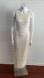 Ivory Beaded Sequin Feather Hem Maxi Gown