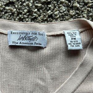 100% Silk Lord & Taylor Cardigan Women Petite Medium Baby Pink/Cream Long Sleeve