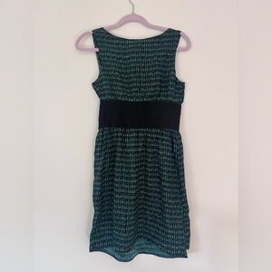 100% Silk MSSP Green/Black Sleeveless Mini Dress With Wide Elastic Waistband XS