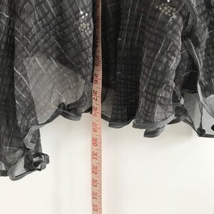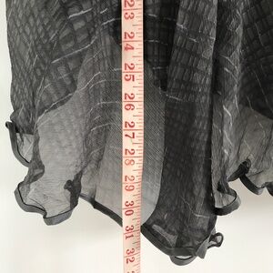 100% Silk Midi A Line Skirt Gray Chiffon Lettuce Hem Side Zip Womens M
