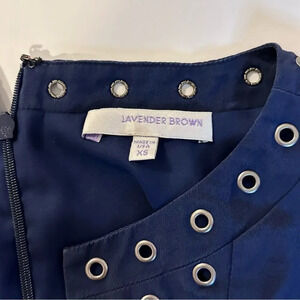 Lavender Brown 100% Silk Navy Blue Cocktail Dress XS
