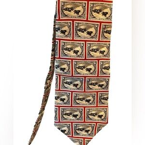 📈📊100% Silk Postage themed tie with $1 stamps. Black, red, white hues