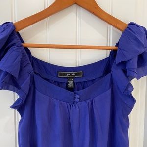 Vibrant Blue Color. Multiple layers on fluttery sleeves.