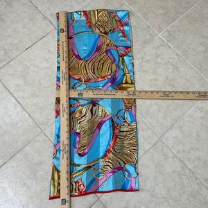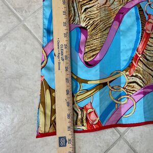 100% Silk Scarf Blue brown Equestrian Horse Bits Chain animal Print multifunctional Blue brown Red & pink colors. Lovely.