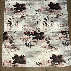 100% Silk Scarf Shaw Wrap Toile Gray Brown, Pink Floral, Boats, Tree
