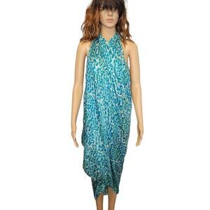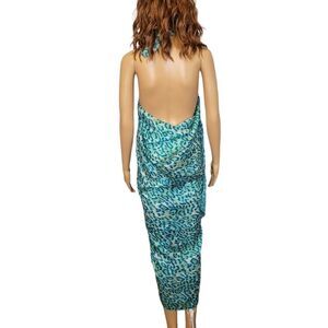 100% Silk Scarf Wrap Blue Leopard Animal Print