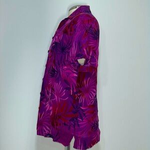 100% Silk Short Sleeve Floral Button Down Blouse Size L