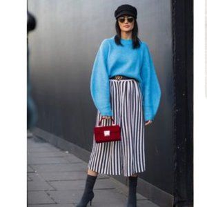 Fun and Flirty! A gorgeous vintage midi skirt by Jones New York. Double lined (not see through) of semi sheer striped design, zebra like printed fabric. Browns, ivory and yellow shades, makes this skirt easy to move from spring and summer into fall and winter! 2 side button waist, with invisible zipper. A gorgeous piece and a fun addition to your wardrobe! Wear a crop top, sandals, sneakers and a jean jacket for a casual shopping day. Throw on a bold green, blue, red sweater and knee boots or booties for a warmer look! Lots of options.