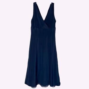 Item in Excellent Preowned Condition. Womens Sleeveless A-Line Midi, Side zip closure, 100% Silk, Navy blue, Polyester lined, Style 622983. PLEASE SEE ALL PHOTOS. Measurements taken laying flat: