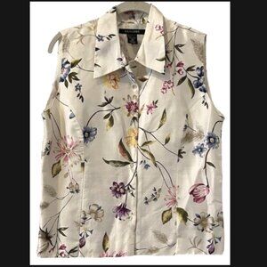 100% Silk Sleeveless Woman’s Flower Button Up Blouse
