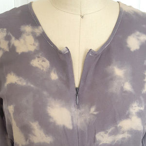 100% Silk Tie Dye Zip Front Long Sleeve Blouse XS