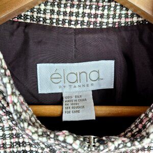 100% Silk Tweed Blazer Jacket Size 14. Pink White Brown Boucle Elana by Tanner