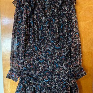 100% Silk Veronica Beard Jaylene Paisley-Print Ruffle Mini Dress size 10
