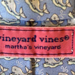 Vineyard Vines Martha's Vineyard Hand Picked by Shep & Ian pointed necktie. Very gently pre-owned - in great condition! Blue color with pattern of whales. Made of 100% imported silk. Handmade in the USA. Dry clean only. Comes from a pet-free and smoke-free home. No returns accepted. We try to take our pictures as accurate to life as possible; however, colors may vary depending on lighting, our camera's capabilities, and your screen's calibration.