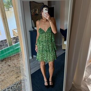 100% Silk Y2K Sarah Green Fern Patterned Mini Dress