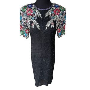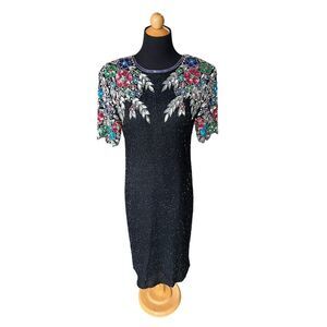 100% Silk Beaded Dress Vintage Stenay size 10