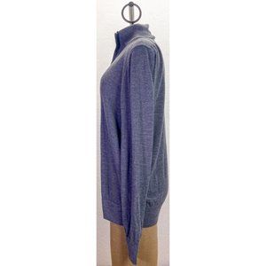 100% Soft Thin Wool Gray Turtleneck Knit 1/4 Zip Sweater