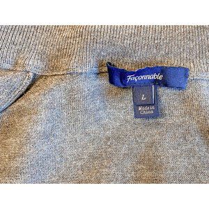 Faconnable, gray, long sleeve, turtleneck, light weight (thin), 100% soft wool, knitted sweater with 1/4 zip closure. This sweater would work for any season.