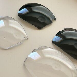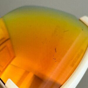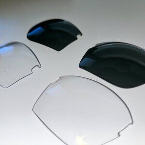 Previously worn but in excellent condition. The mirrored lens has some light scratches that don't affect vision, while the black and clear lenses are in better shape.