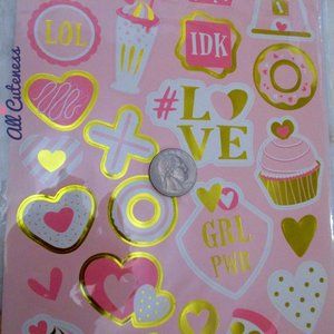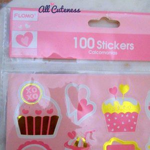 Cute set of 100 stickers in girly pink, gold, and white colors.