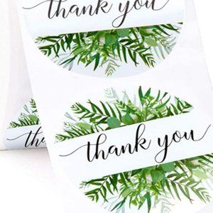 100 THANK YOU Stickers Greenery Botanical Design 2"