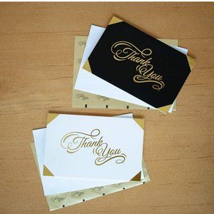 These 4x6 thank you notes look stunning with the embossed gold foil print! You’ll get 50 black and 50 white thank you cards with 100 envelopes and 100 sealing stickers. Simply write your personalized message inside the non-smudge card, insert a photo if you'd like and add a special gold-foil heart sticker as a final touch of class.