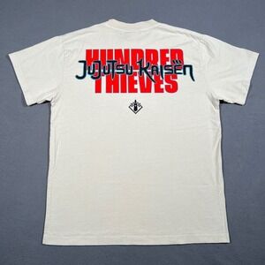 Keywords: 100 Thieves, Jujutsu Kaisen, Anime T-Shirt, Graphic Tee, Mens T-Shirt, Cream T-Shirt, Medium, M, Collaboration, Streetwear, Casual, Anime Graphic, Collectible, Limited Edition, Made in USA, Gamer shirt