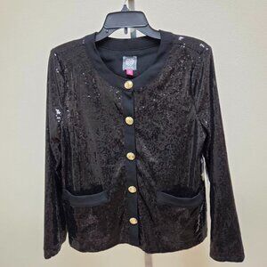 $ 100 Vince Camuto Women's Sequined Collarless Cropped Jacket Size 10