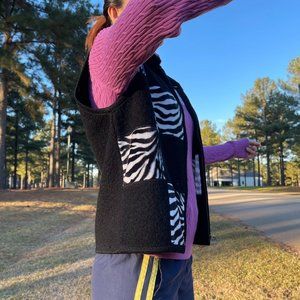 100% WOOL ZEBRA FAUX FUR COLLAR VEST