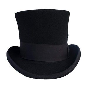 100% Wool Authentic Tuxedo Top Hat Men's , Black, Victorian Halloween Hat