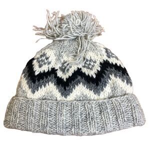 100% Wool Beanie Winter Wooly Hat Pom Pom Made In Nepal