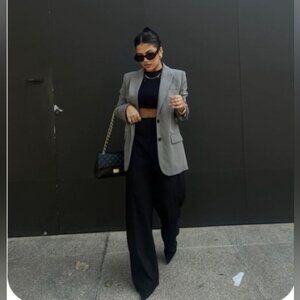 Grey blazer jacket by Sag Harbor. VTG. 100% Pure New Wool. Lightweight for wool, not stiff. Fully lined. Relaxed style. 2 slip in pockets on front, one still sewn shut = EUC! Made in Guatemala. Lots of styling options! **Design style inspo pics included