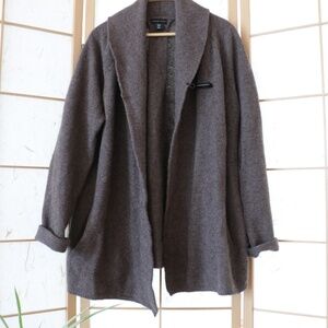 100% Wool Brown Shawl Collar Long Sweater