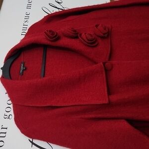 100% Wool Crochet Flowers Cardigan Jacket Sweater Winter Elegant 1X