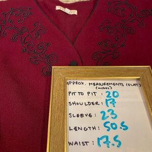 100% Wool Embroidered Dress 14 Burgundy Long Button-Up Vintage House Coat