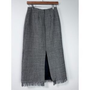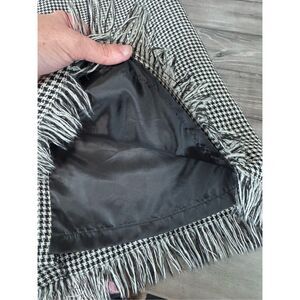 100% Wool Houndstooth Long Fringe Black White Skirt Size 4