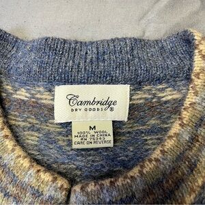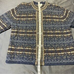 100% Wool Nordic Ski Cardigan Sweater Cambridge Pewter Clasps Medium Gray Blue