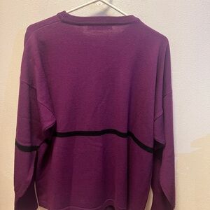 100% wool purple sweater with a black stripe. Perfect for casual wear. Soft and comfortable fabric. Bin K