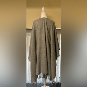 Faribault Mill (since 1865) grey 100% wool shawl with fringe detail.