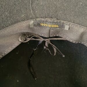 Bow on side of hat. Inside has ribbon to tighten to fit to your head