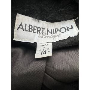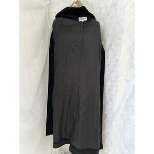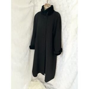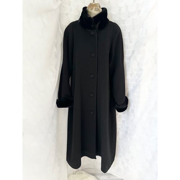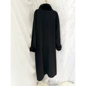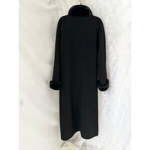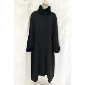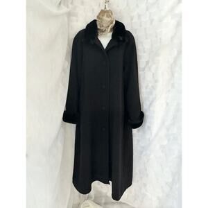 100% Wool Woman’s LONG Black MAXI Dress Coat Faux Fur Trim Albert Nipon USA Made