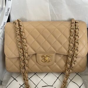 100% authentic CHANEL jumbo double flap beige clair caviar GHW